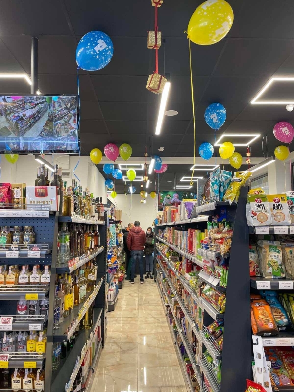 За година магазинът спечели доверието на много клиенти и се наложи като супермаркет №1 в ж.к. „Дъбника“. По случай празника, днес можете да се възползвате от 5% отстъпка за всички артикули в обекта. Собствениците на „Мy Market” са подготвили и почерпка за своите многобройни клиенти.