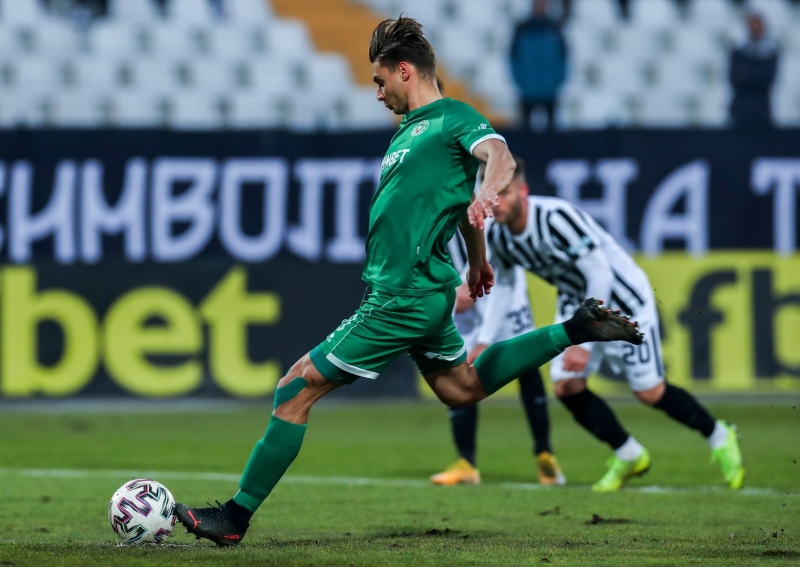 В 10-ата минута Красимир Тодоров спечели дузпа за своя тим. Младият футболист бе препънат в наказателното поле от Лукас Рейдър, а главният съдия Красен Георгиев отсъди 11-метров наказателен удар. Зад топката застана Дориан Бабунски, който не пропусна да забие поредния си гол в efbet Лига.