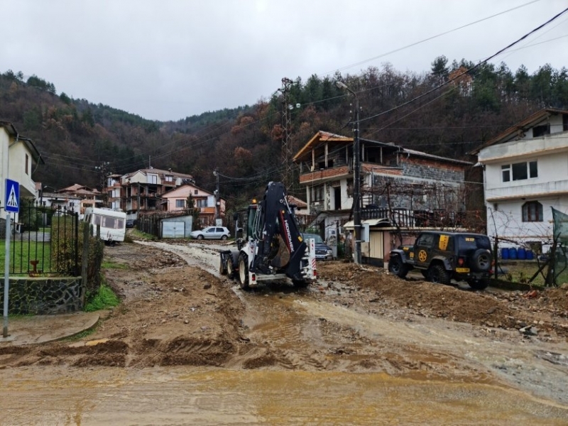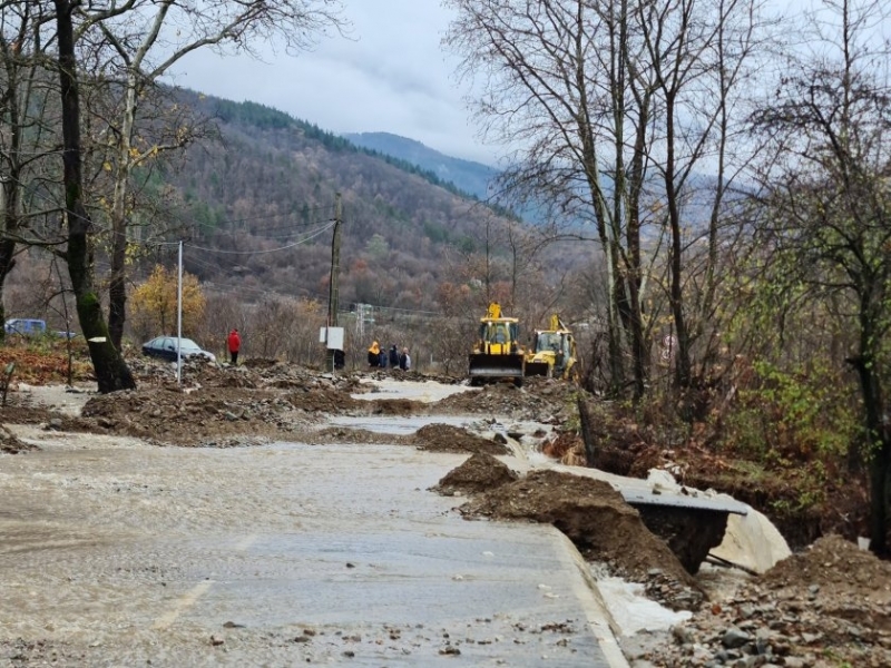 Техниката работи от полунощ за овладяване на свлачища и разчистване на пътища. Затворен след подкопаване на асфалта е новият път за село Беласица. Дерета наводниха улиците в кв. "Бухото", усложнена беше, но се овладя обстановката при Първо ОУ "Кочо Мавродиев", съобщи Община Петрич.