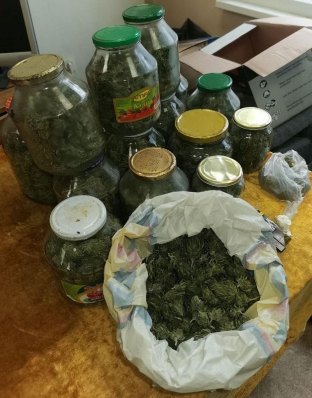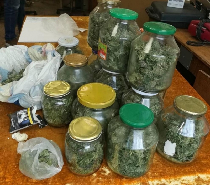При извършените полеви наркотестове откритите вещества реагирали съответно на марихуана и амфетамин. При последвалото претърсване на адреса на водача криминалистите попаднали на своеобразен склад със марихуана, „консервирана“ в множество стъклени буркани с различна вместимост, прилежно затворени с алуминиеви капачки на винт.