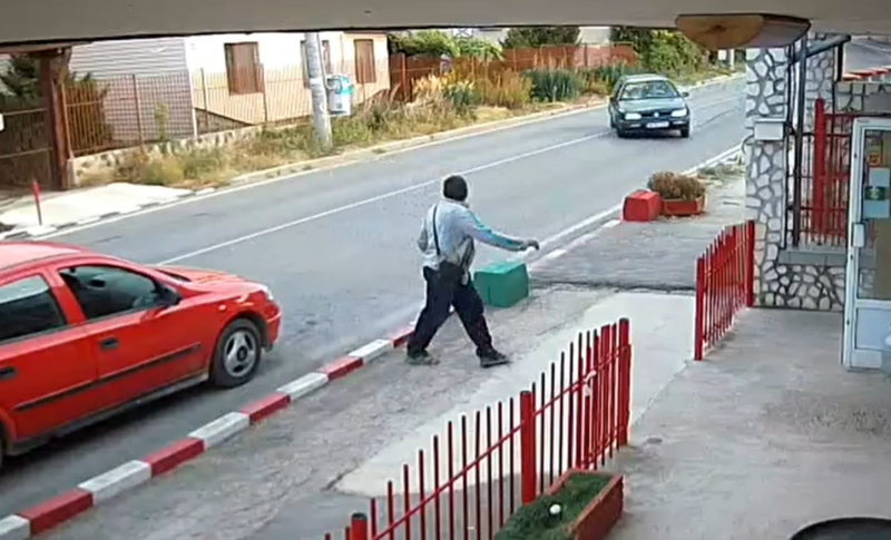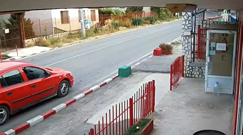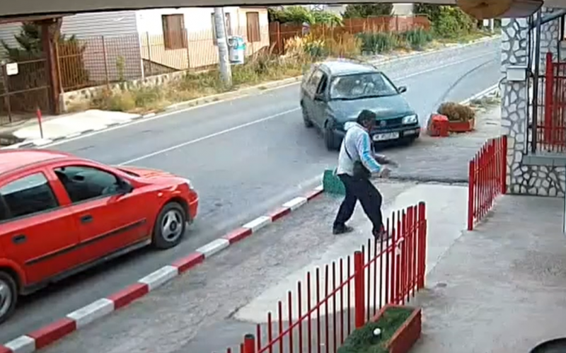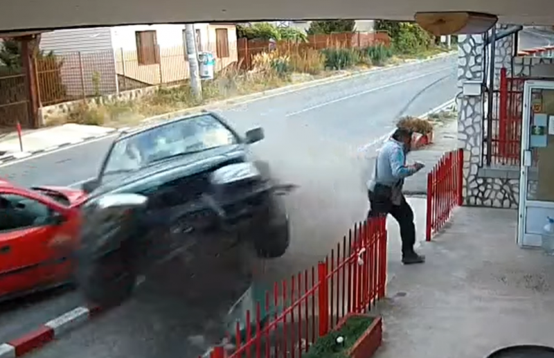 На видео, качено вчера в социалната мрежа фейсбук, се вижда как мъж спира с лекия си автомобил "Опел" пред местен магазин. Човекът слиза от колата си и тръгва да влиза в обекта, като в същия момент към него лети "Фолксваген Голф". Мъжът успява да избяга от идващото към него возило, при което то помита автомобила му и се забива в магазина.
