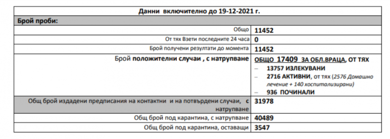 Към момента активните случаи в област Враца са 2716, от тях 2576 са на домашно лечение, а 140 са хоспитализирани.