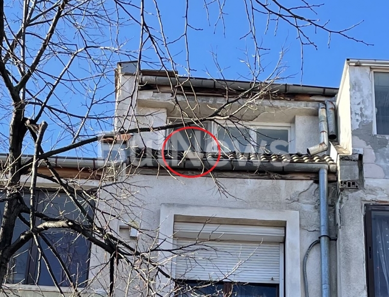 Причината за ограничителната мярка е голямо парче мазилка, което застрашително виси от покрива на сградата и може всеки момент да се стовари върху минаващ човек.
