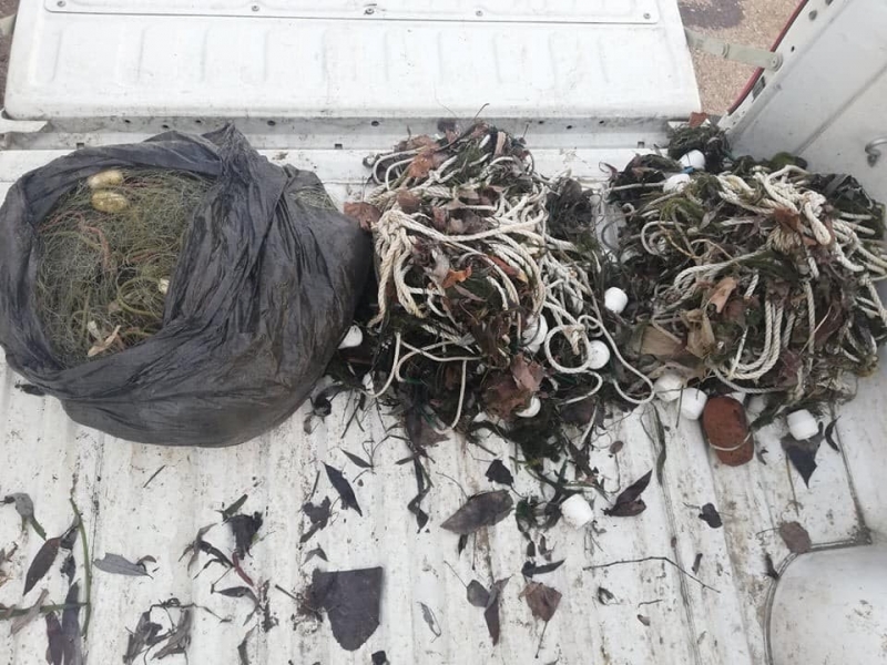 Извадени са и 40 метра мрежи, а уловът в тях - 2 кг платика, е върнат обратно във водата.