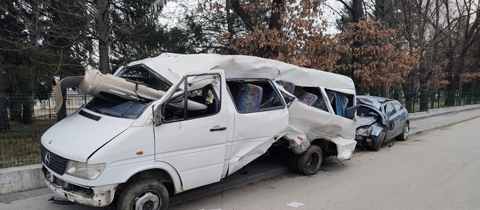 Тази сутрин в 5.15 часа са се ударили пътнически микробус „Мерцедес” и лек автомобил „Опел”. От удара те са се завъртели на пътя и са се преобърнали в канавките. Пострадали са двамата шофьори, по неофициална информация са закарани в „Пирогов”. Водачът на буса е 56-годишен, на леката кола - 27-годишен, и двамата са от Ботевград.