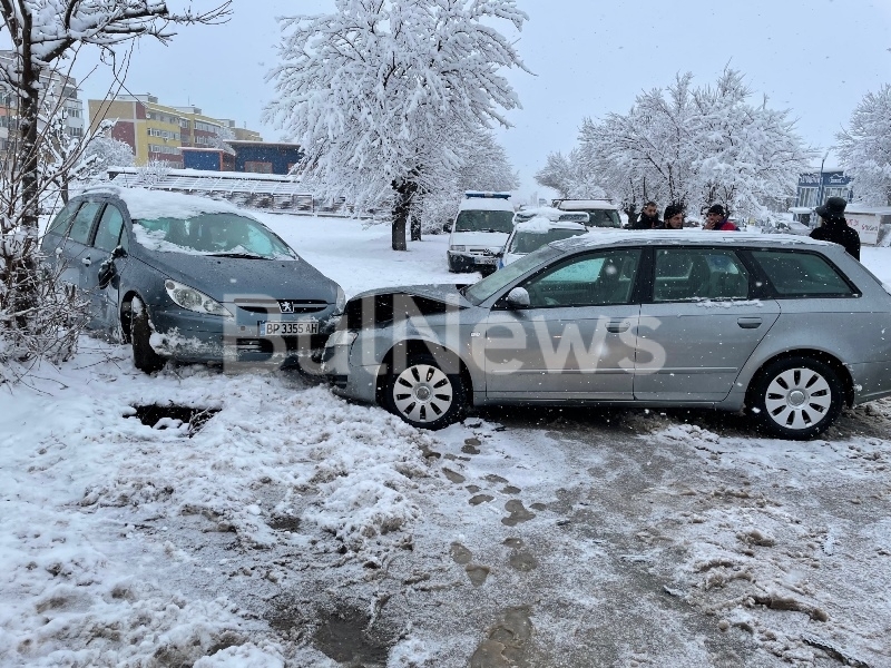 Снегът ни почна! Катастрофа с "Ауди" на Криводолско шосе във Враца, щетите са големи /снимки/