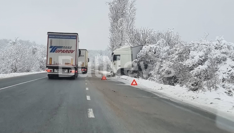 Ледена епоха! ТИР се завъртя на Е-79 между Враца и Монтана, карайте внимателно /снимки/