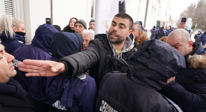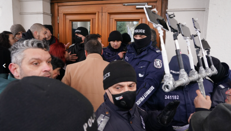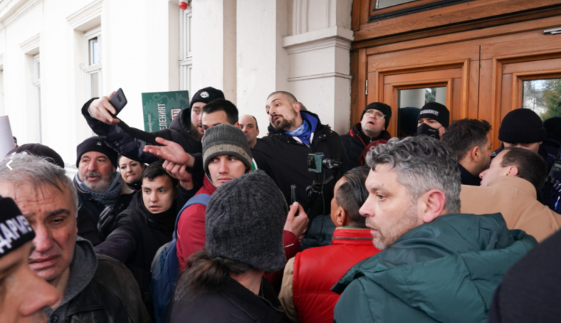 Напрежението се породи, след като протестиращите не бяха допуснати вътре, за да преговарят с депутатите. В действителност такива сградата почти няма, в сградата са останали малко народни представители, предимно от "Възраждане".