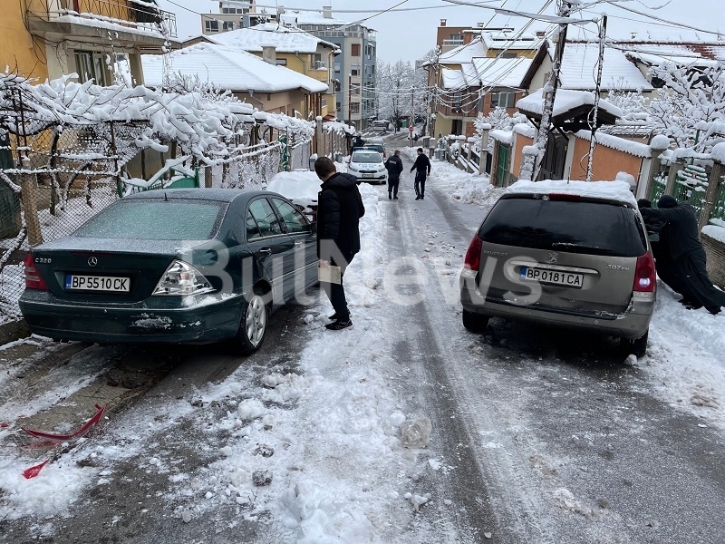 Зима е! "Пежо" се поднесе и се заби в паркиран "Мерцедес" във Враца /снимки/