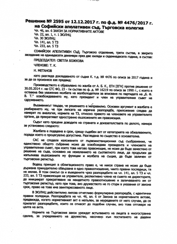 Следващо вписване е на 31.08.2021 г. в 11:52:03: Данни от Търговски регистър: Орлин Димитров фигурира като Председател на УС, но вече не и като член на УС.