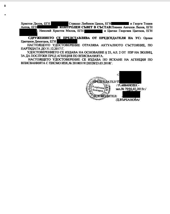 Удостоверение № 1491/28.03.2018 г. на Врачански окръжен съд, Снимка 8, Удостоверение за актуално състояние - вписване 19.04.2018 г. в 08:28:11 ч., Орлин Димитров е Председател и член на УС! Удостоверението отразява обстоятелства към 31.12.2017 г. !!!! Което не означава ли, че Орлин Димитров от април до декември 2017 г. е бил в нарушение на чл. 19, ал. 7, т. 3 от Закона за администрацията? Също така, не е ли бил в нарушение на цитирания закон до уволнението си през 2019 г.?