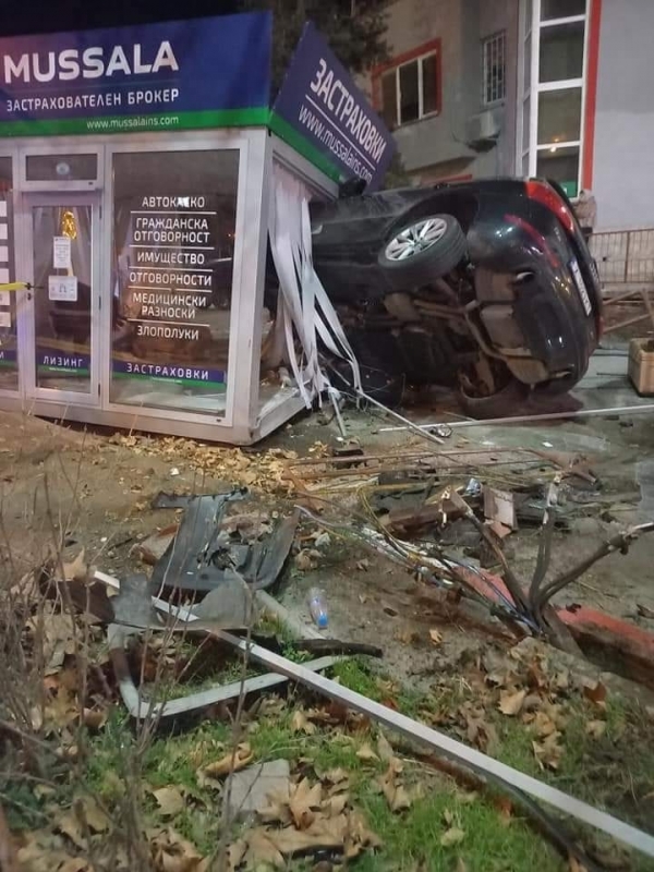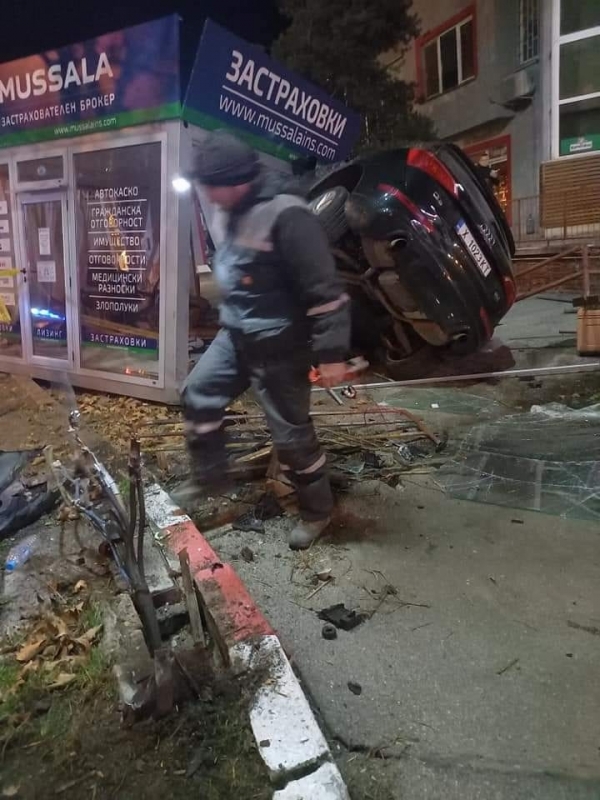 Пътният инцидент е станал около 23 часа снощи, на бул. "Панония", до бензиностанция "Лукойл". Лек автомобил "Ауди" Q5 с хасковска регистрация, управляван от около 30-годишен мъж, се е забил в офиса на застрахователно дружество.
