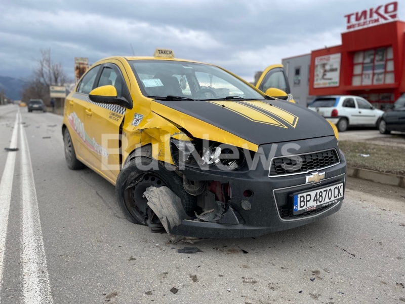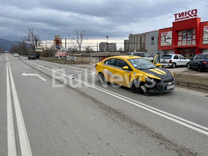 Пътният инцидент е станал преди минути. Врачанско такси "Шевролет", в което имало клиент, пътувало по бул. "Васил Кънчов" в посока ж.к. "Младост", когато от ул. "Спортна" излязъл лек автомобил "Фолксваген Пасат". Шофьорът на немската кола, която е също с врачанска регистрация, отнел предимството на таксито и го ударил в предната дясна част.