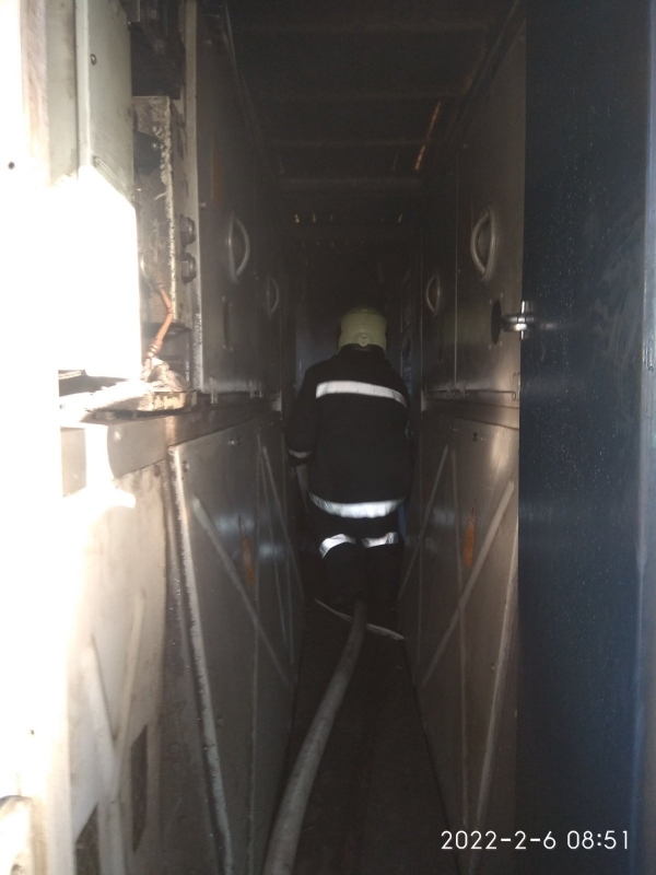 В 7.30 тази сутрин е получен сигнал за пожар в локомотив на товарен влак. Композицията, натоварена с цимент, пътувала от Песнопой към Баня, когато в тесен и труднодостъпен участък от жп трасето единият от машинистите усетил миризма на горящи кабели.