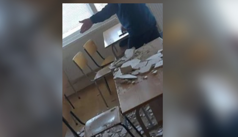 По думите му вчера децата са имали сборна група между 10-ти и 11-ти клас по проект „Мобилност“ на програма „Еразъм“. Мазилката от тавана се откъртила и паднала на сантиметри от класовете, но ударила едно от децата.