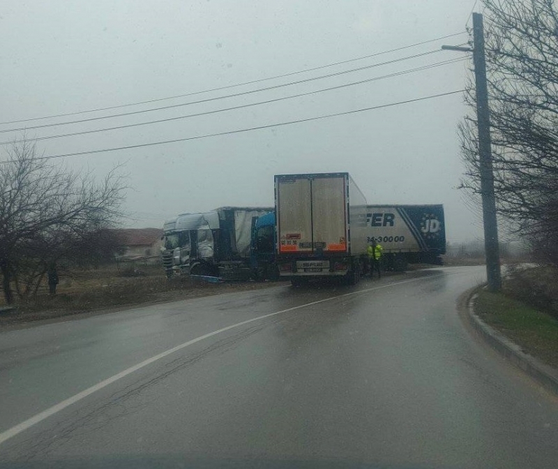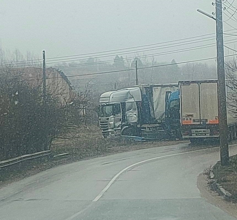 Инцидент на пътя: Два ТИР-а се удариха в Монтанско, трафикът е затруднен /снимки/