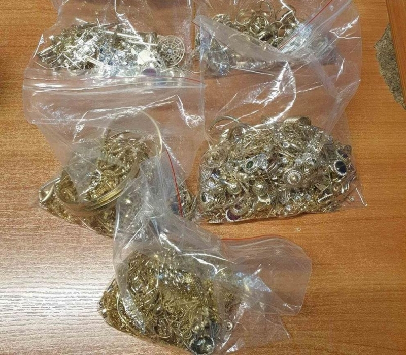 При личен преглед на шофьорите, под ризата на единия, облепени по тялото са открити 5 пакета, съдържащи пръстени, гривни, обеци, колиета от жълт и бял метал. Направената от вещото лице експертиза установява, че накитите с общо тегло 1010.83 грама са от 14, 18, 22 -каратово злато на стойност 103 805 лева.