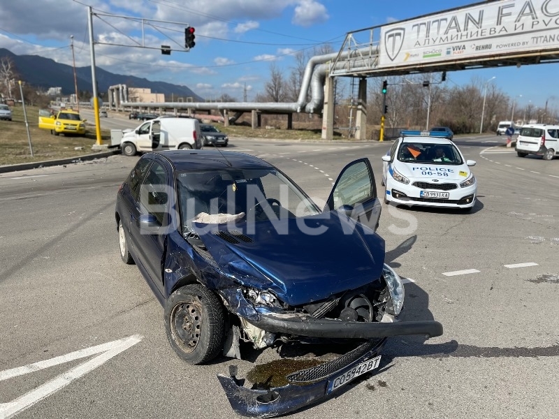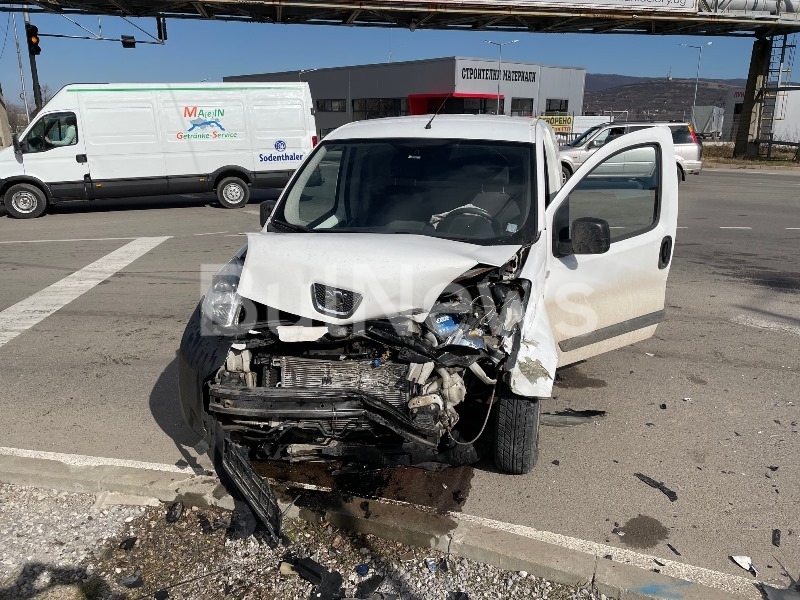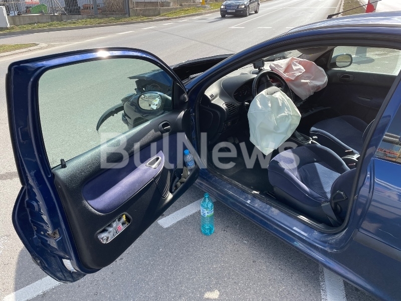 Пътният инцидент е станал преди минути. Софийско "Пежо 206", управлявано от жена, идвало откъм "Химко", когато шофьорката му опитала да направи ляв завой към ж.к. "Младост". Тя отнела предимството на друго "Пежо" с врачанската регистрация, в което били двама мъже и пътували към столицата. Последвал страшен удар, вследствие на който и двете возила са с размазани предници.