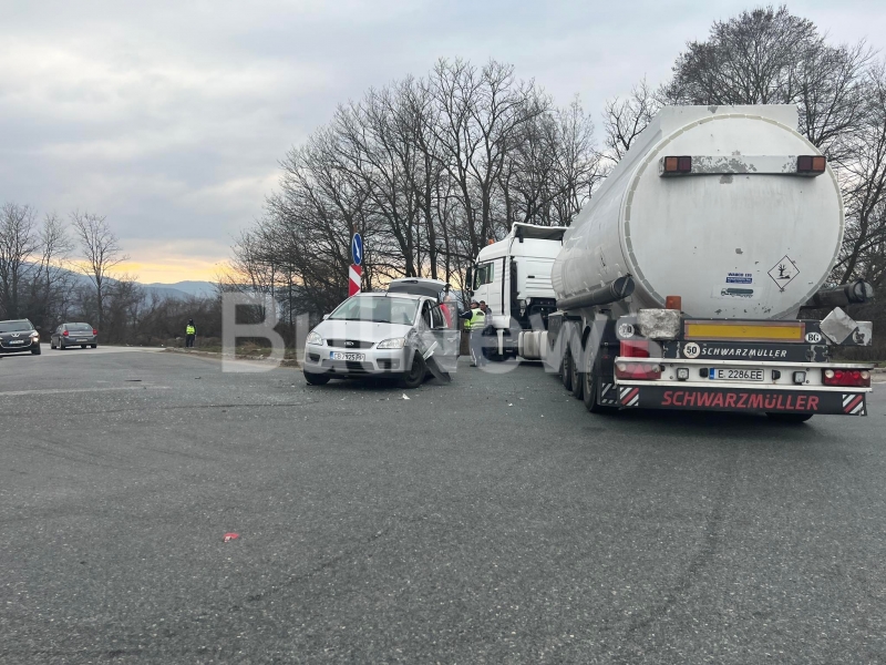 Катастрофа между благоевградска цистерна и лек автомобил „Форд“ е станала на международния път Е-79 на разклона за Ботевград преди минути, видя първо репортер на агенция BulNews.