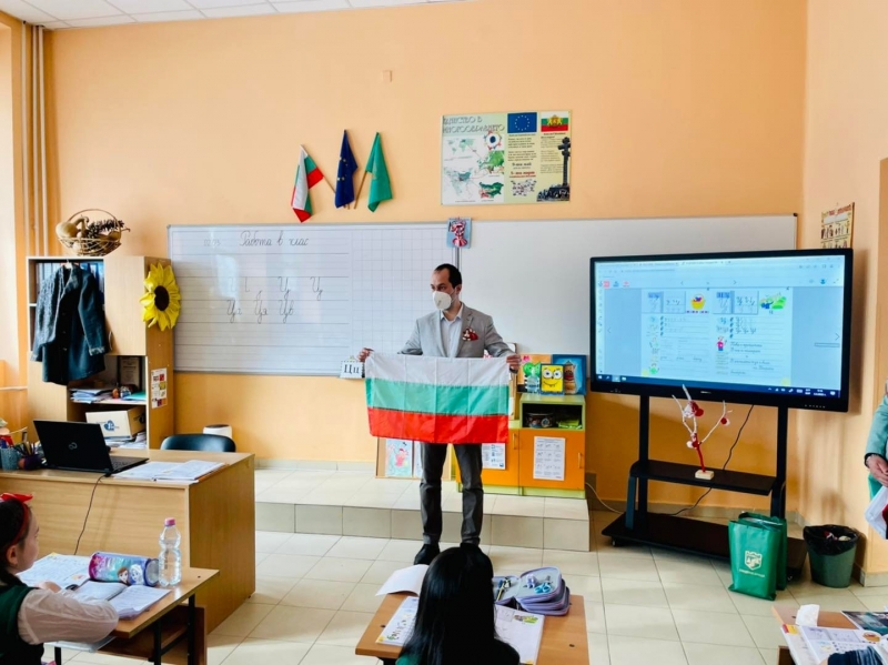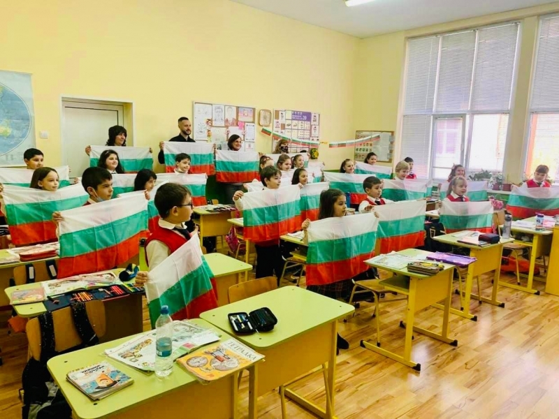 Председателят на Общинския съвет д-р Владимир Христов раздаде български знамена на първокласниците от СУ „Никола Войводов“, СУ „Васил Кънчов“, СУ „Отец Паисий“, ОУ „Св.Св. Кирил и Методий“ и ИОУ „Васил Левски“.