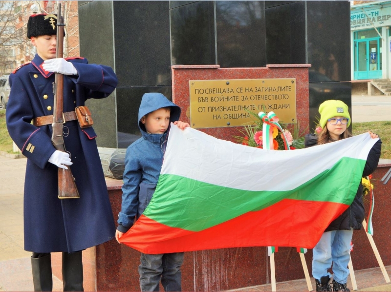 Под съпровода на „Мила Родино“ кметът на общината и мажоретки издигнаха националния трибагреник, знамето на общината и флага на Европейския съюз.