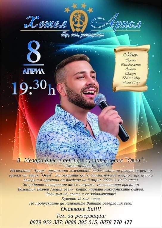 Ресторант „Ариел” в Мездра организира колективно отбелязване на рождения ден на всички от зодия Овен.
