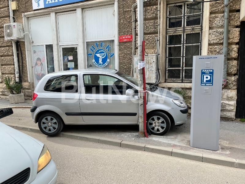 Катастрофиралата кола не пречи на движението по централната улица и то се осъществява нормално.