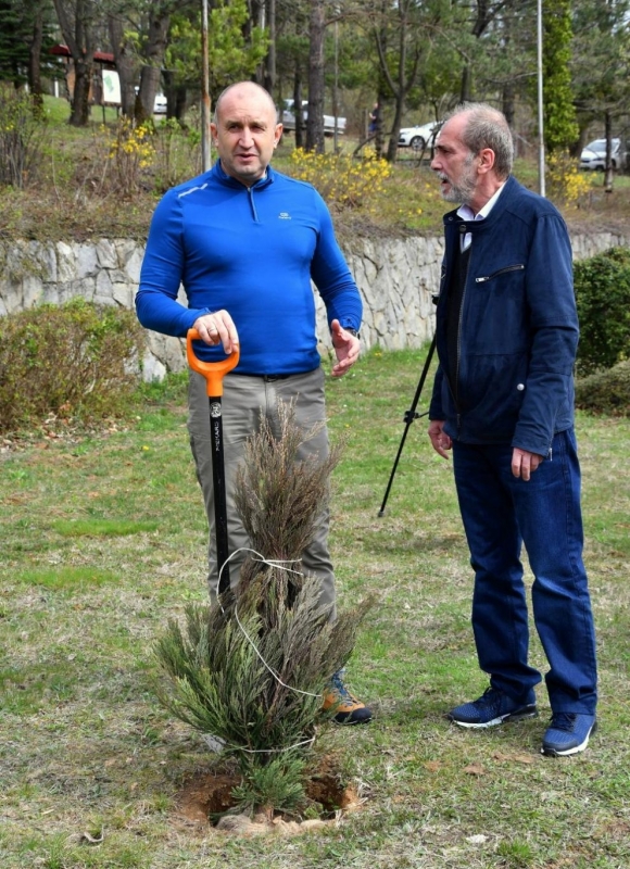 Заедно с държавния глава в залесяването участват студенти и преподаватели от Лесотехническия университет в София, представители на Администрацията на Президента и доброволци.