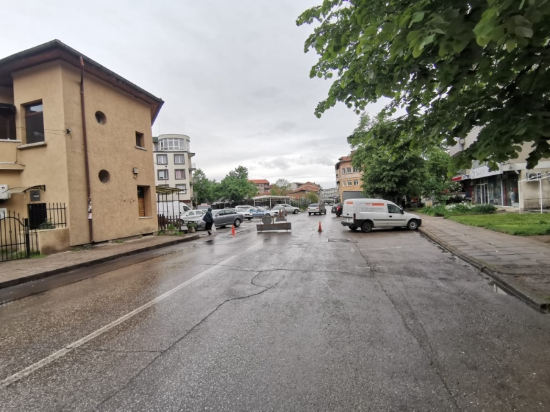 Преди около час бе затворена част от улица "Кръстьо Българията". Преминаването на автомобили е ограничено в участъка около пешеходната пътека на улица "Никола Войводов".