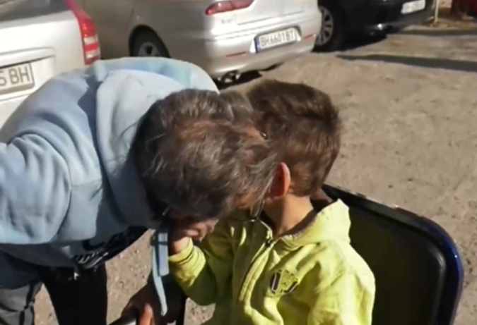 Детето е с множество заболявания, а с количката бащата сам го придвижва в града.