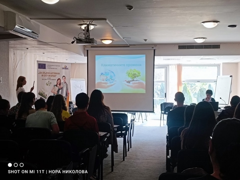 Нашите ученици с интерес следяха презентацията на тема „Климатичните промени“ и слушаха лекцията към нея, след което се включиха в организираните дискусии, бяха креативни създавайки различни предмети от отпадъчни материали, рисуваха с огромно желание, а накрая заслужено получиха сертификати.
