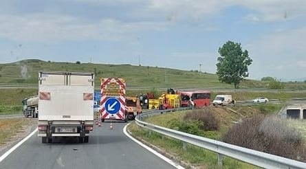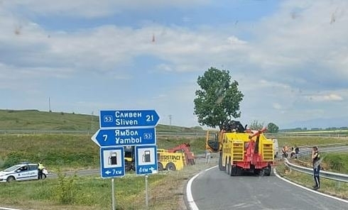 Фирмен автобус е размазан след тежка катастрофа на разклона на АМ "Тракия" за Ямбол и Сливен, съобщава Флагман.