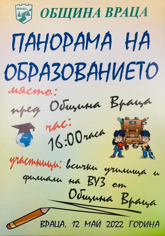 “Панорама на образованието“ ще се проведе на 12 май, от 16 часа, пред сградата на община Враца.