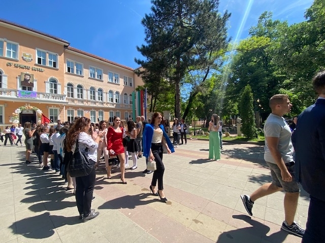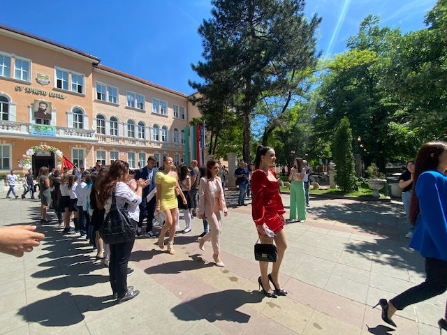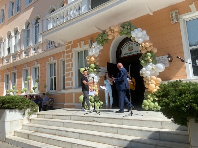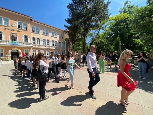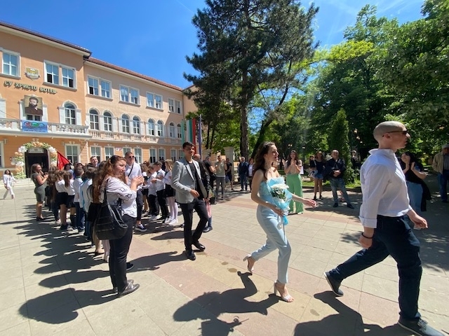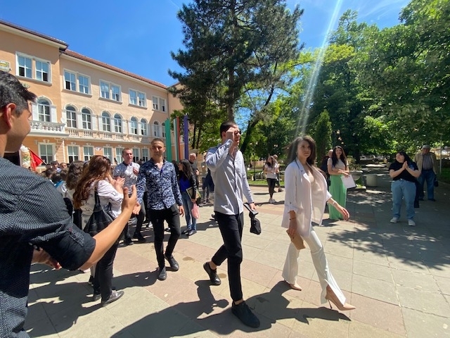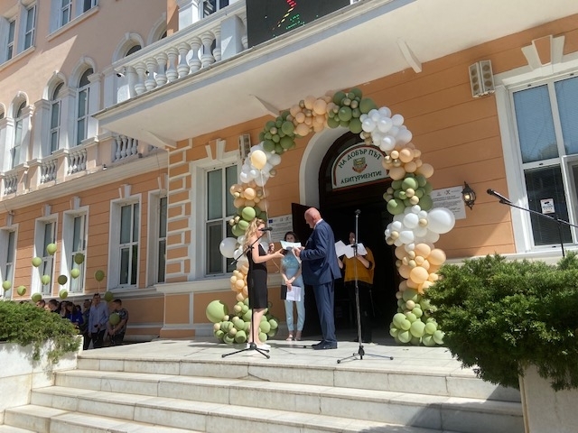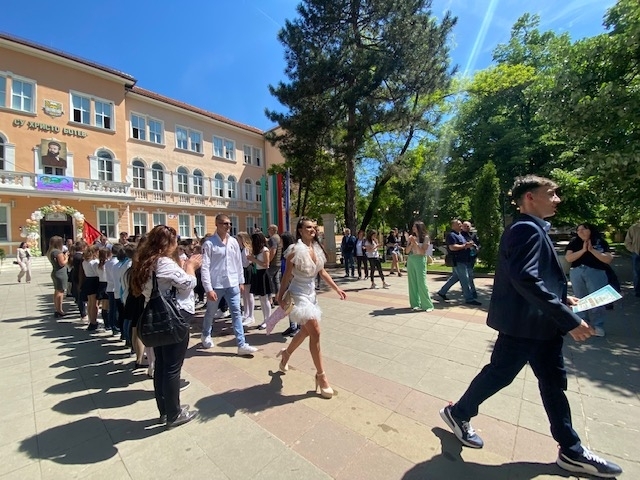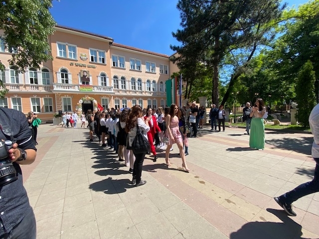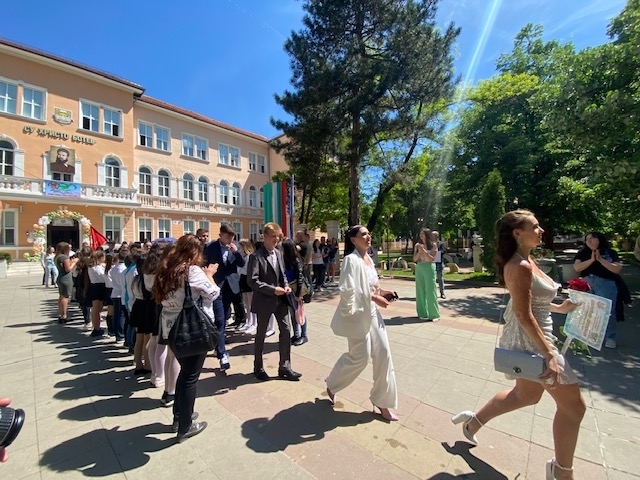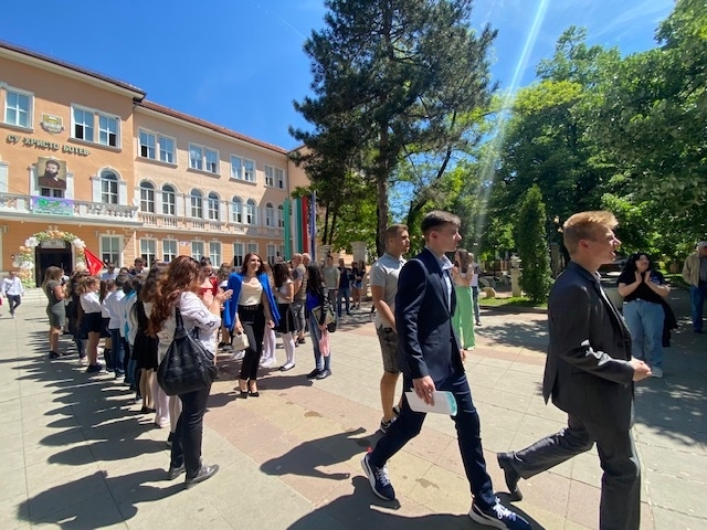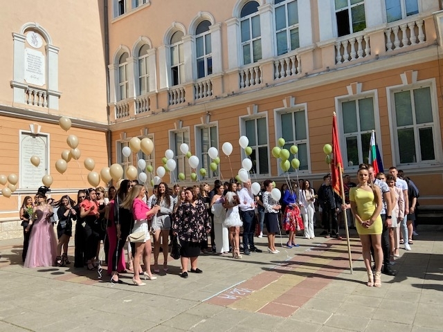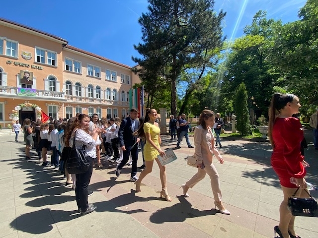 Тържеството започна в 10 часа в двора на училището. 68 възпитаници завършиха успешно и по традиция на 24 май ще бъде техният абитуриентски бал. Те са разпределени в 3 паралелки: "Биология и здравно образование" /23 ученици/; "История и цивилизация" /23 ученици/; "География и икономика"/ 22 ученици/.