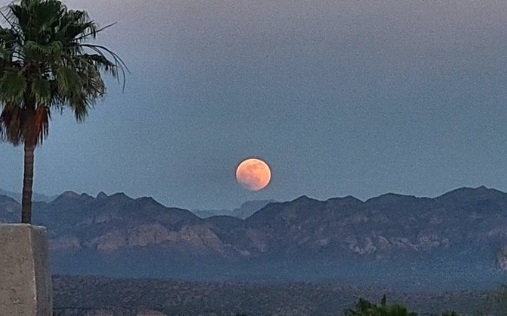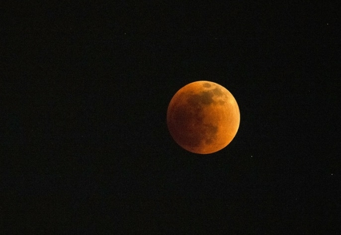 През това време спътникът попадна напълно в сянката на Земята и временно го оцвети в тъмночервено. Цветът се получава от слънчевата светлина, преминаваща през земната атмосфера и попадаща върху засенчената повърхност на Луната.