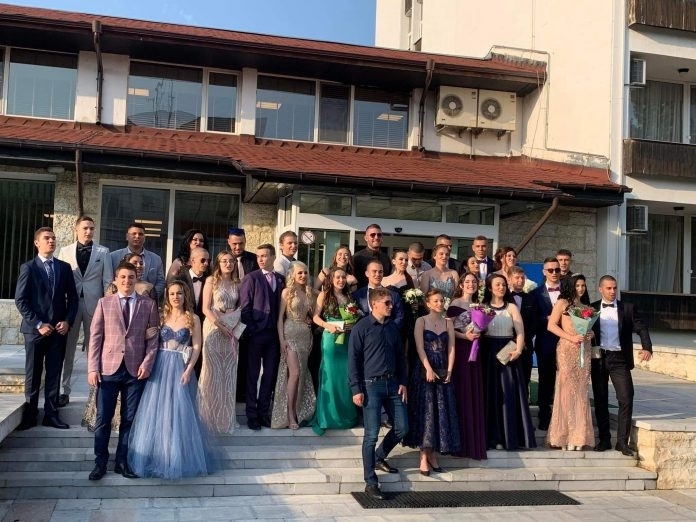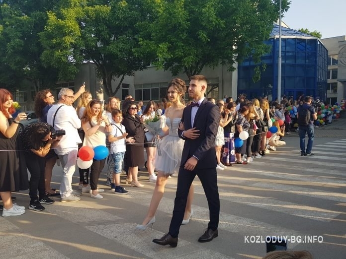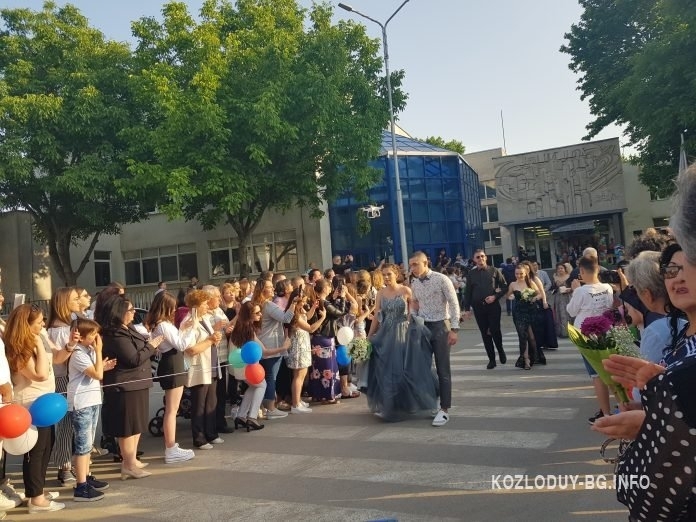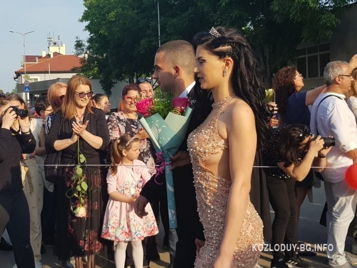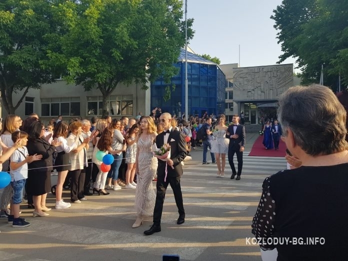Снощи зрелостниците дефилираха по дълъг червен килим, опънат пред входа на училището. Заради дефилето беше затворена главната улица. Преминаването на дванайсетокласниците по червения килим е символ на елит, стил и разкош, които показаха красивите млади хора с тоалетите си.