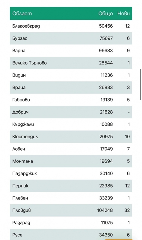 Актуалната статистика по области вижте в галерията по-долу: