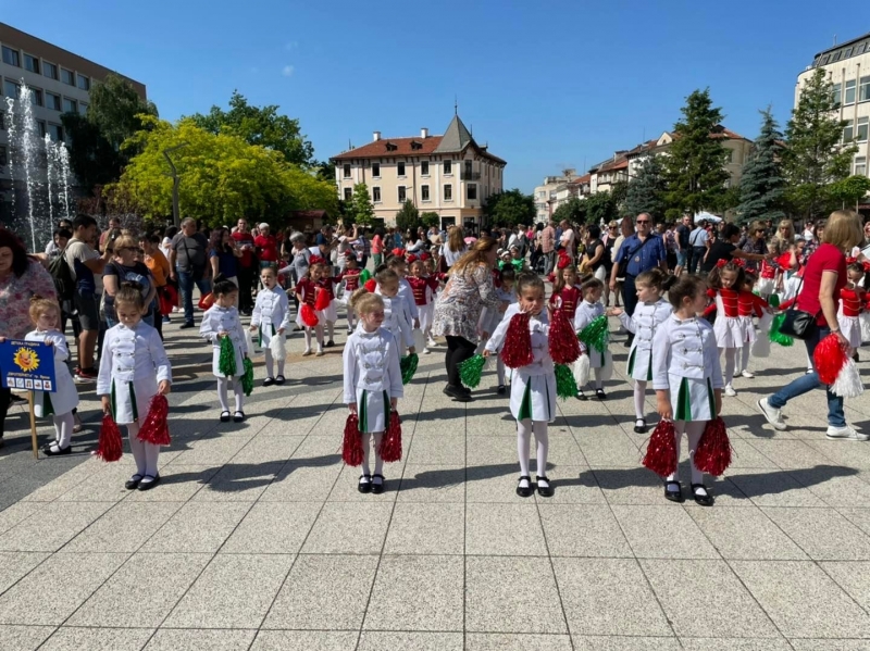 Стартът на пъстрото дефиле бе даден от градинката пред Сувенирната палата, като под съпровода на духовия оркестър малките мажоретки преминаха по централната пешеходна зона и стигнаха до централния площад.
