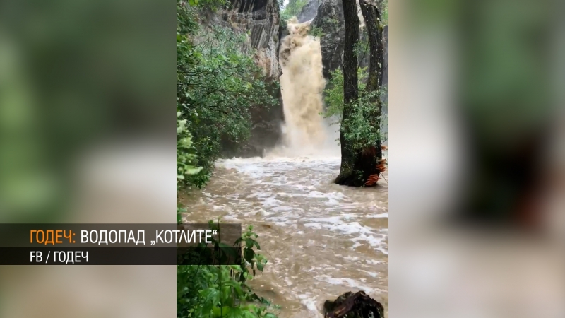 След дъждовете в Западна България внезапно “оживя” и друг живописен водопад - “Котлите”, съвсем близо до село Разбоище край Годеч. Височината на този каменен великан е около 30 метра, разделени в няколко скока. След последните валежи “Котлите” се превърна в страховито бушуващо зрелище, показва видео, публикувано във фейсбук групата “Годеч”.