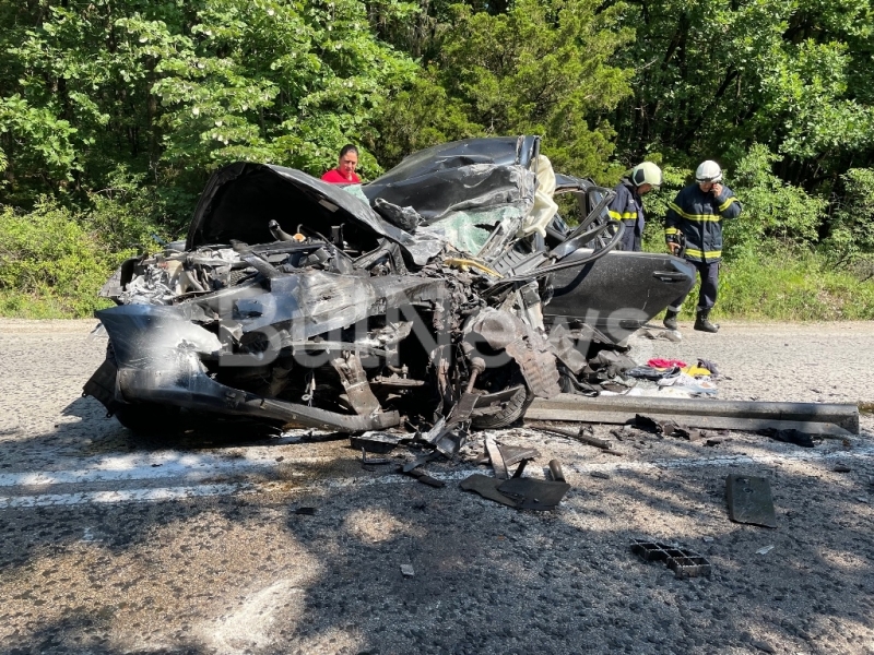 Лекият автомобил е смазан до неузнаваемост, а шофьорът му е загинал на място. Тялото все още е в превозното средство. На мястото има две пожарни, като служителите се готвят да срежат смачканите ламарини, за да извадят трупа.