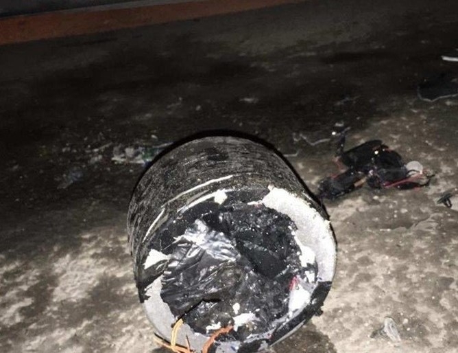 Взривното устройство се е състояло от четири газови бутилки за къмпинг, като три от тях са експлодирали и са нанесли значителни щети на входа на сградата.