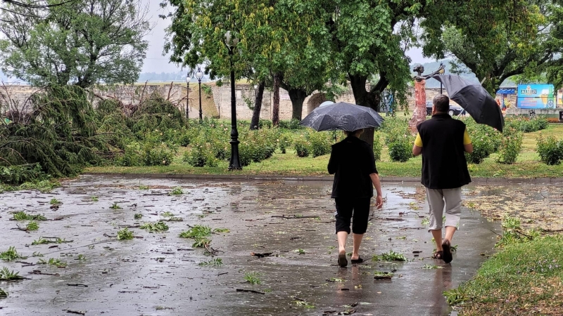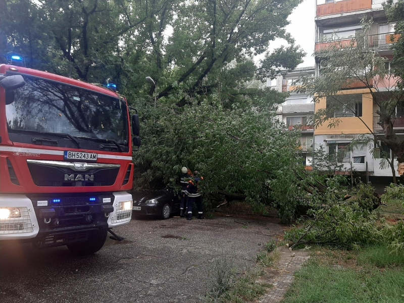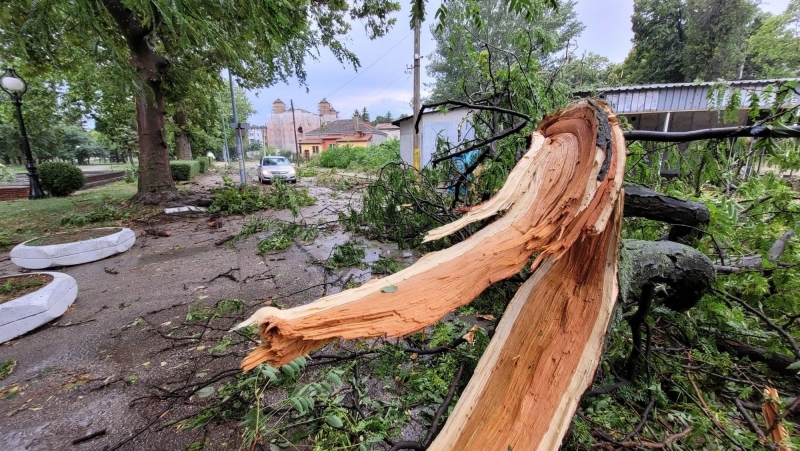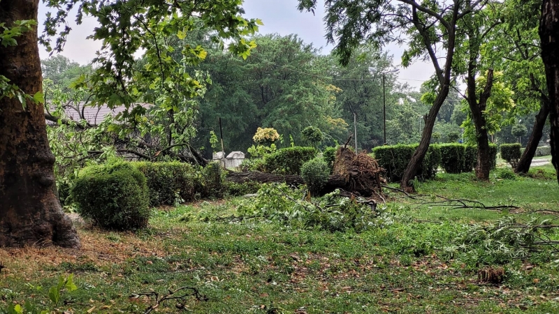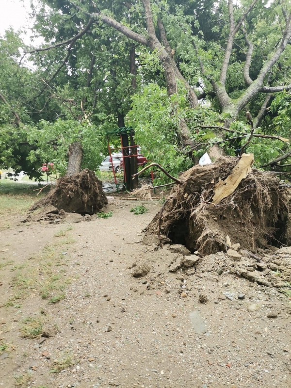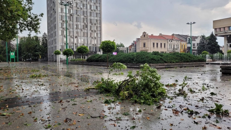 Бурята удари областния център малко след 17 часа днес. Тя вилня повече от 15 минути. Заради силния вятър на много места в града са изпочупени клони. Много дървета са изкоренени в Крайдунавския парк, а има и наводнени улици.