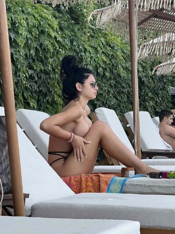 "Мис България 2020" се пече без горнище и едва ли е очаквала това да остане незабелязано, още повече че пищния ѝ силикон е повече от видим.