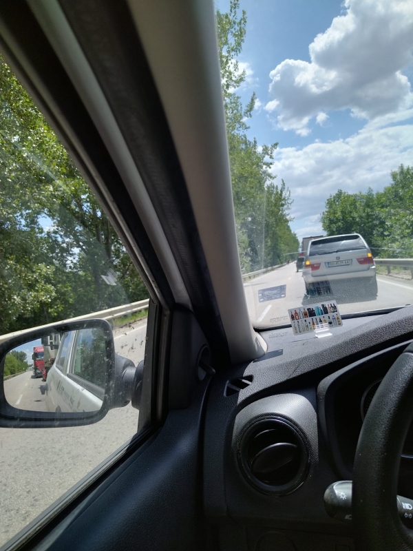 От удара автомобилът се е завъртял перпендикулярно в дясната пътна лента. По тази причина движението в района е блокирано. И в двете посоки са се образували километрични колони от коли и тежкотоварни камиони.