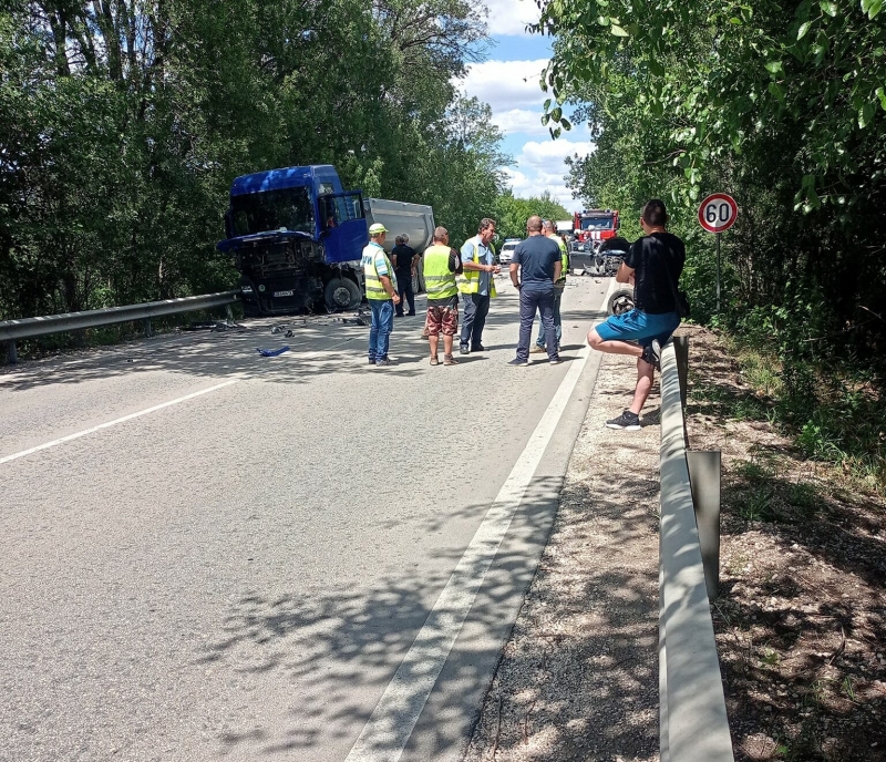 Произшествието е станало преди около час, малко след бензиностанция „Фанти Г“. Ударили са се ТИР и лека кола.