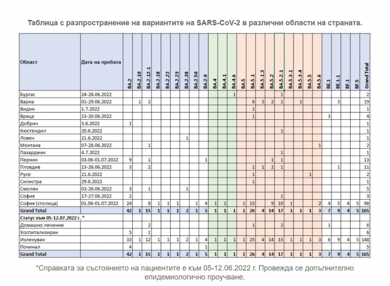 Нараства броят на по-бързо разпространявания вариант BA.5.x, съответно, през месец юни 37,7%, а през юли 68,4% от пробите са от този подвариант.