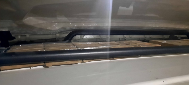 В хода на проверката, в кухина между две тръби под спойлера на кабината, били открити 10 пакета, опаковани с тиксо. При отваряне на един от тях било установено бяло прахообразно вещество, което при направен полеви тест е реагирало положително на кокаин.