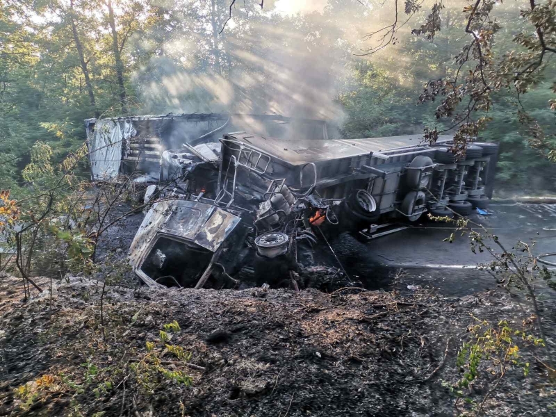 Вследствие на челния удар товарните автомобили се самозапалват, като все още гасенето им продължава. Единият от водачите, по първоначални данни чуждестранен гражданин, най-вероятно е загинал в кабината на тира си.