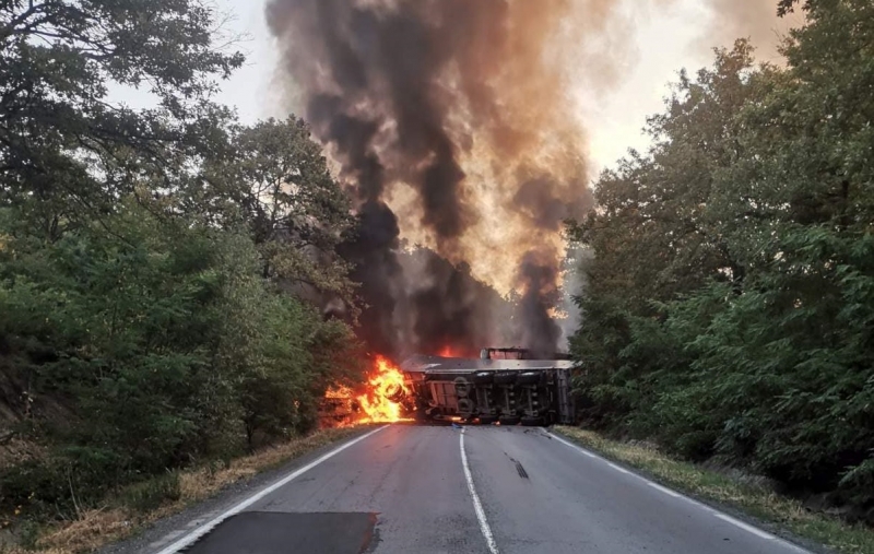 Вторият водач, българин, е успял да излезе невредим. Неговият товарен автомобил е превозвал въглища, като в момента действията са насочени към неутрализиране възможността товарът да се запали.