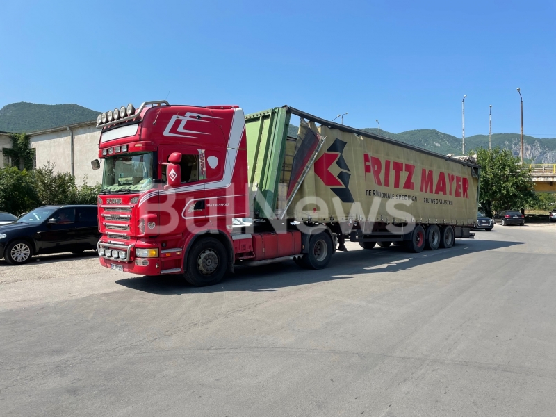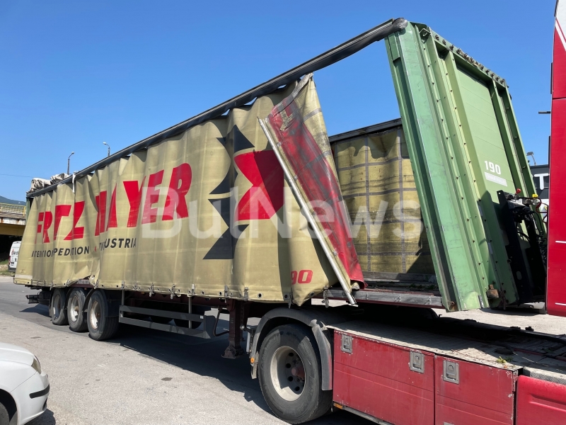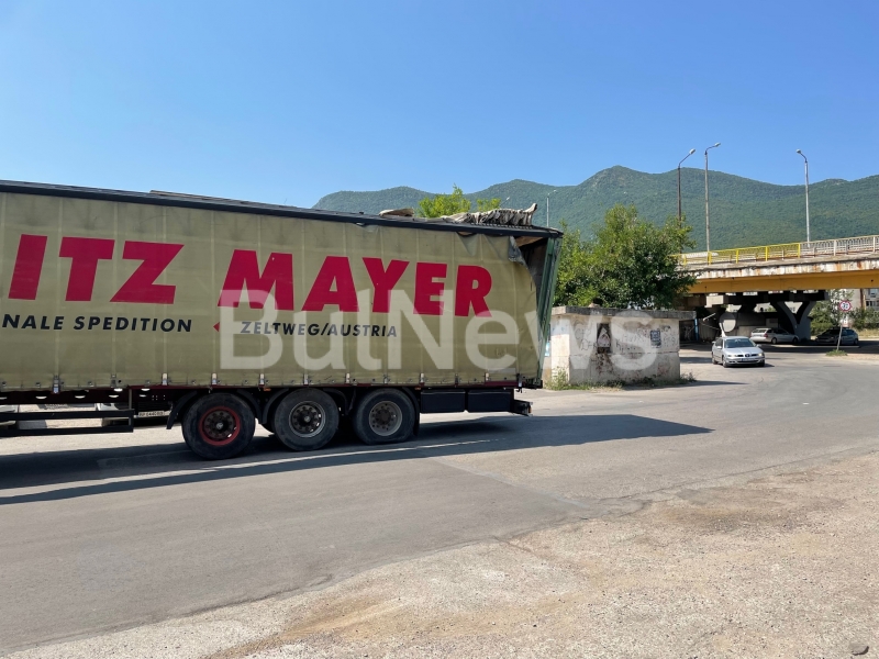 Камионът вече е излязъл изпод надлеза. Нанесени са щети по ремаркето му, което за щастие е било празно и не се е стигнало до поражения и по превозван товар.